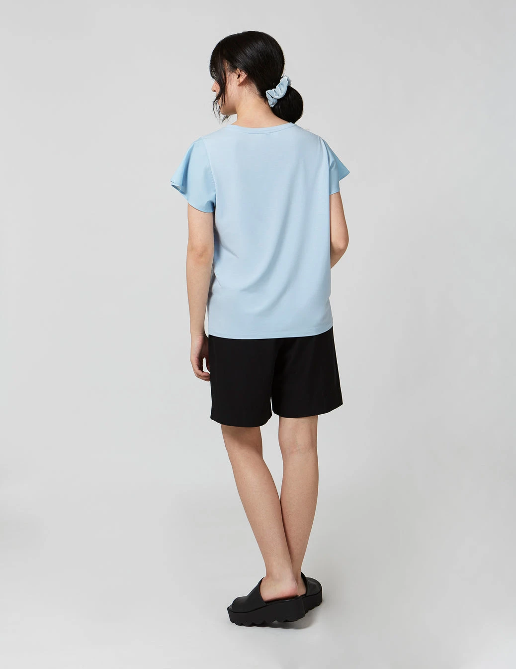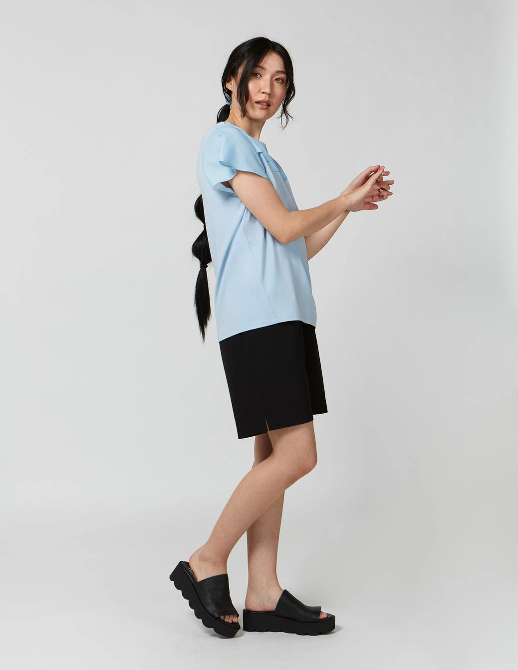 Short sleeves top with round neckline made with TENCEL™ Modal, sourced from sustainable beech wood and produced in an environmentally responsible pulp to fiber process, and with Möbius LT, made with recycled polyester, created by using post-consumer plastic bottles. Dolman sleeves top with Möbius LT fabric on sleeves and front yoke.