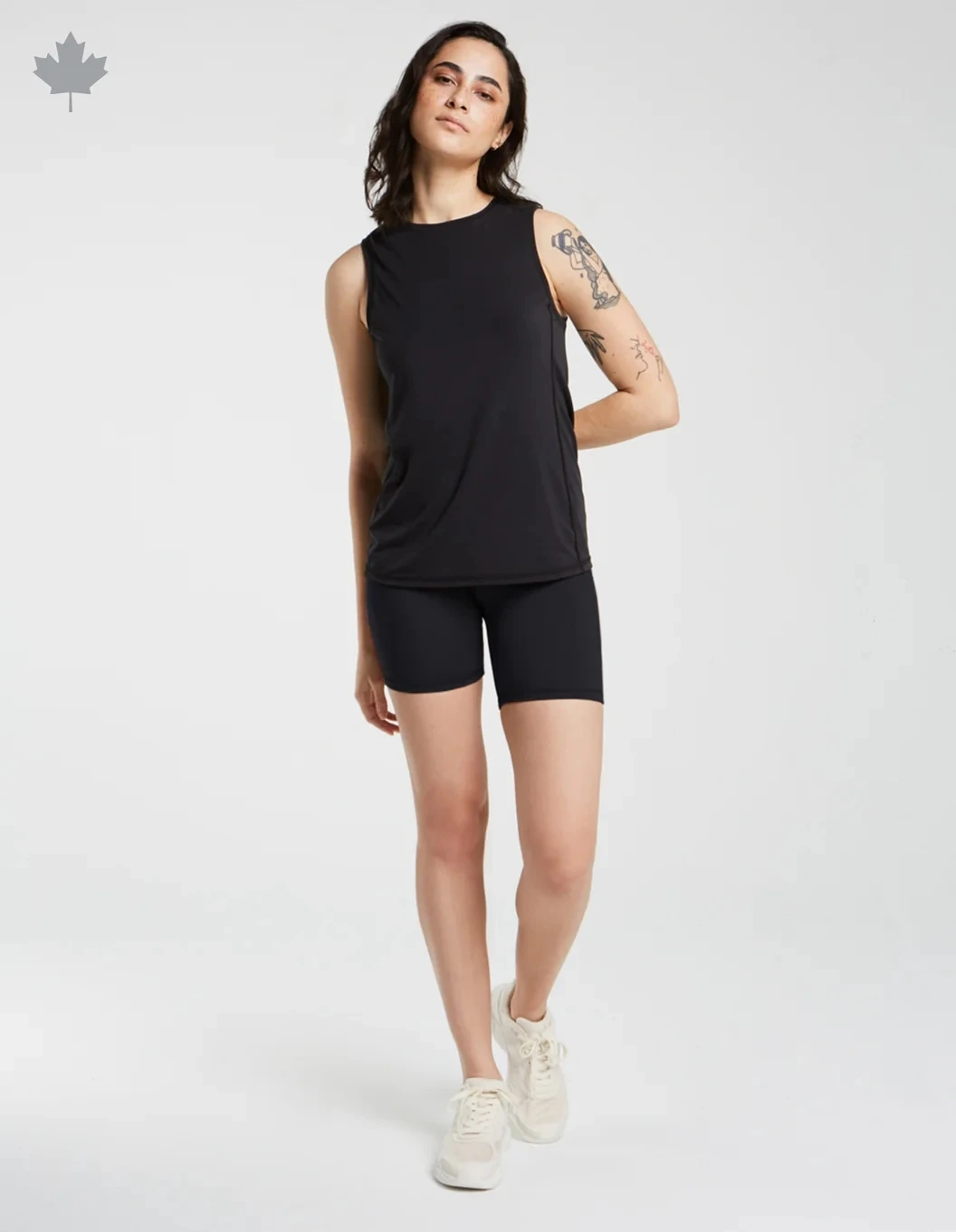 Stretchy biker shorts for the woman who loves physical activities, made with Möbius Flex ™, which is made with recycled polyester, created by using post-consumer plastic bottles. Short with comfortable and compressive waistband, high-rise, built-in gusset, hidden pockets in the waistband and flat lock stitching for additional comfort.