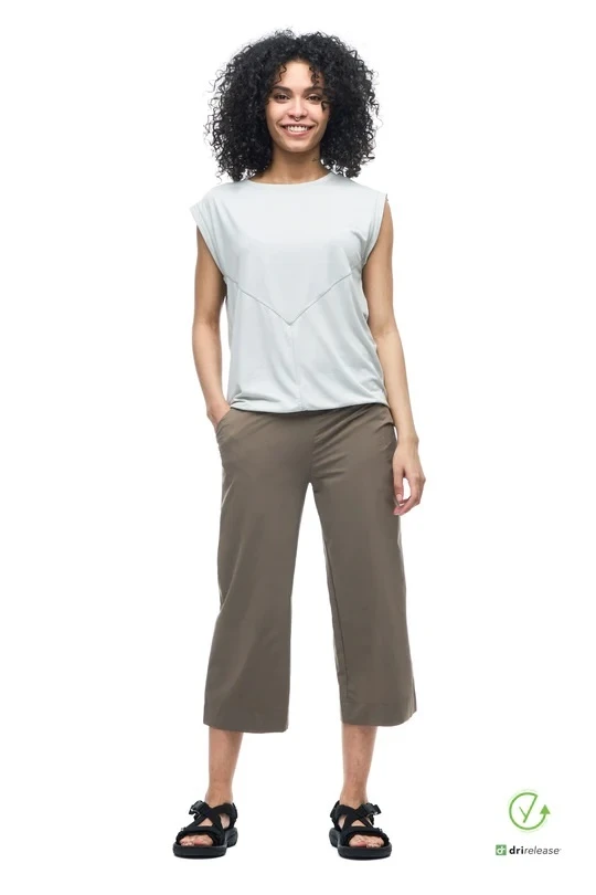 The sleeveless crew neck shirt Goma LT is made from a fabric containing TENCELTM Lyocell, a biodegradable and compostable cellulosic fiber created using an environmentally responsible closed-loop process that transforms wood pulp obtained from sustainable sources into fibers. The blend of these ecological fibers with polyester fibers provides durability, breathability, softness, elasticity and stability to the garment. It has moisture-wicking and fast drying properties, which minimizes odours and maximizes comfort. These features make this top versatile, great for hiking, travel and various outdoor activities.