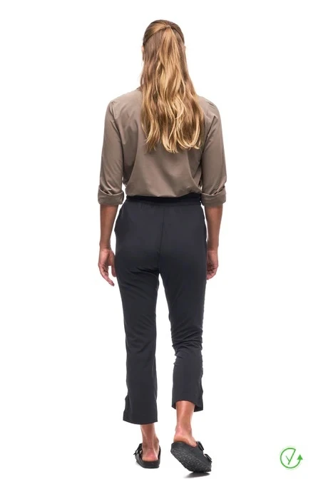 The straight fit capri pant Panto is made of a light woven fabric that offers comfort, lightness, softness and stretchability. The fabric dries quickly and has moisture wicking properties. It has also an elastic waistband with drawstring adjustment and a secure zipped pocket at front. These features make these pants versatile, great for hiking, travel and various outdoor activities. Made from GRS-certified recycled polyester.