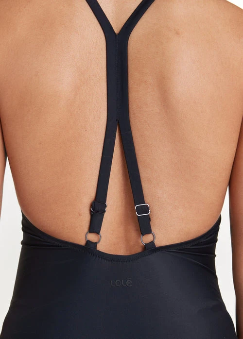 Sophisticated. Sustainable. Functional. The Soleil one-piece swimsuit is fully lined at the front and features a scoop neck and adjustable strappy back detailing.