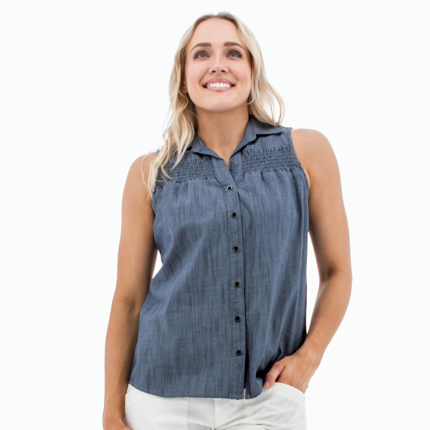 Easygoing and effortless, the Rae Tank Top embodies the ethos of Old Ranch Brands. This tank top takes classic style and pairs it with thoughtful details and quality design to bring you a tank top deserving of everyday wear, year after year. Cotton and polyester allow for a balance between breathability and moisture-wicking properties, as well as increased durability, drape, soft handfeel, and lightness compared to cotton alone. The Y-neck and smocking along the front and back yokes are flattering and wide bra-friendly straps make this easy. Pair with anything and everything, this top can stand up for any occasion.