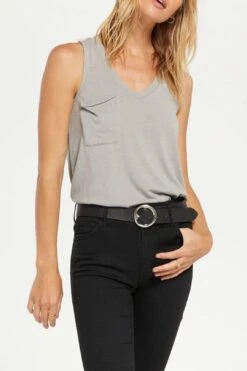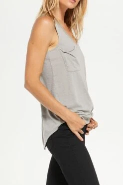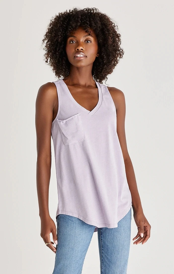 Beat the heat in this lightweight, relaxed fitted racer tank. Made from our Signature Burnout jersey fabric, this tank features a slouchy chest pocket, a v-neckline and curved hem. While Our signature burnout fabric adds texture and softness; the lighter colorways can be semi-sheer.